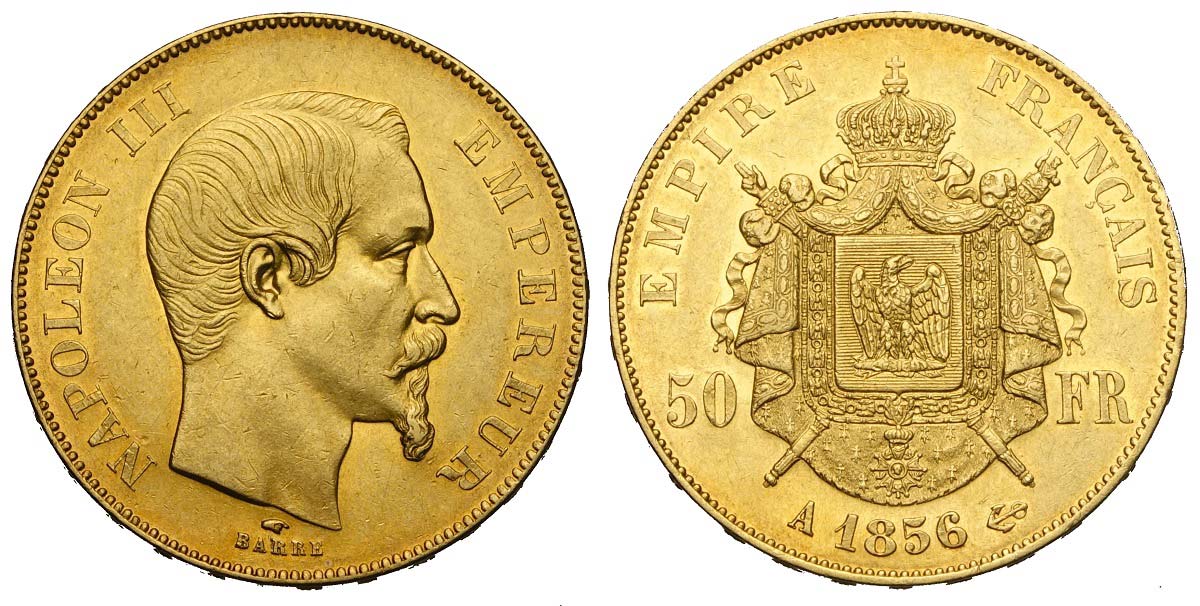 France, Napoleon III, 50 Francs 1856-A, Au mm 28 g 16,12 BB-SPL
