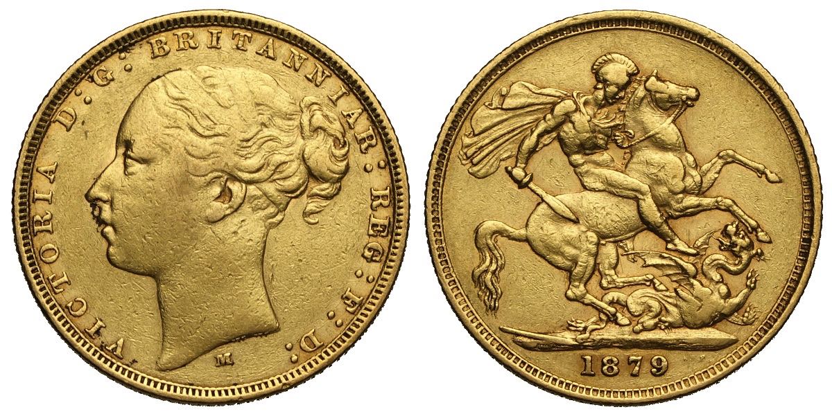 Australia, Victoria, Shield Sovereign 1879-S, Au mm 22 BB