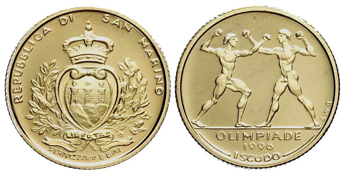 San Marino, Nuova Monetazione, 1/2 Marengo da 1 Scudo 1996, Au mm 16 Proof