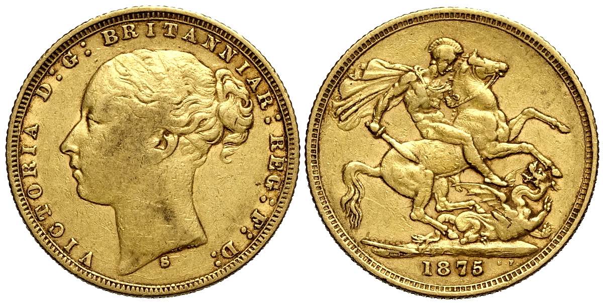 Australia, Victoria, Sovereign 1875-S, Au mm 22 BB