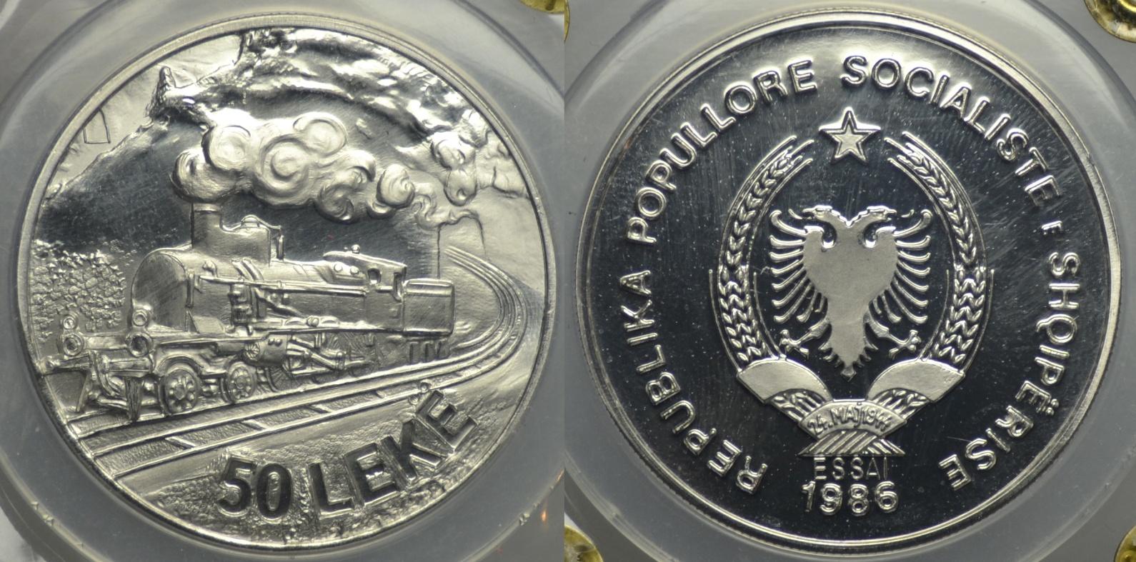 Albania 50 Lek 1986 Ferrovia ESSAI Platino - Albania – Repubblica Socialista (1945-1990)50 Lek 1986 Ferrovia ESSAI Platino Emissione ...