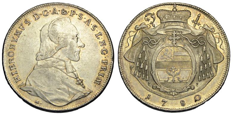 Austria / Salisburgo Tallero 1780 - Austria / Salisburgo – Gerolamo (1772-1803)Tallero 1780 - AG mm 41,1 g. 27,82Leggermente pulita ...