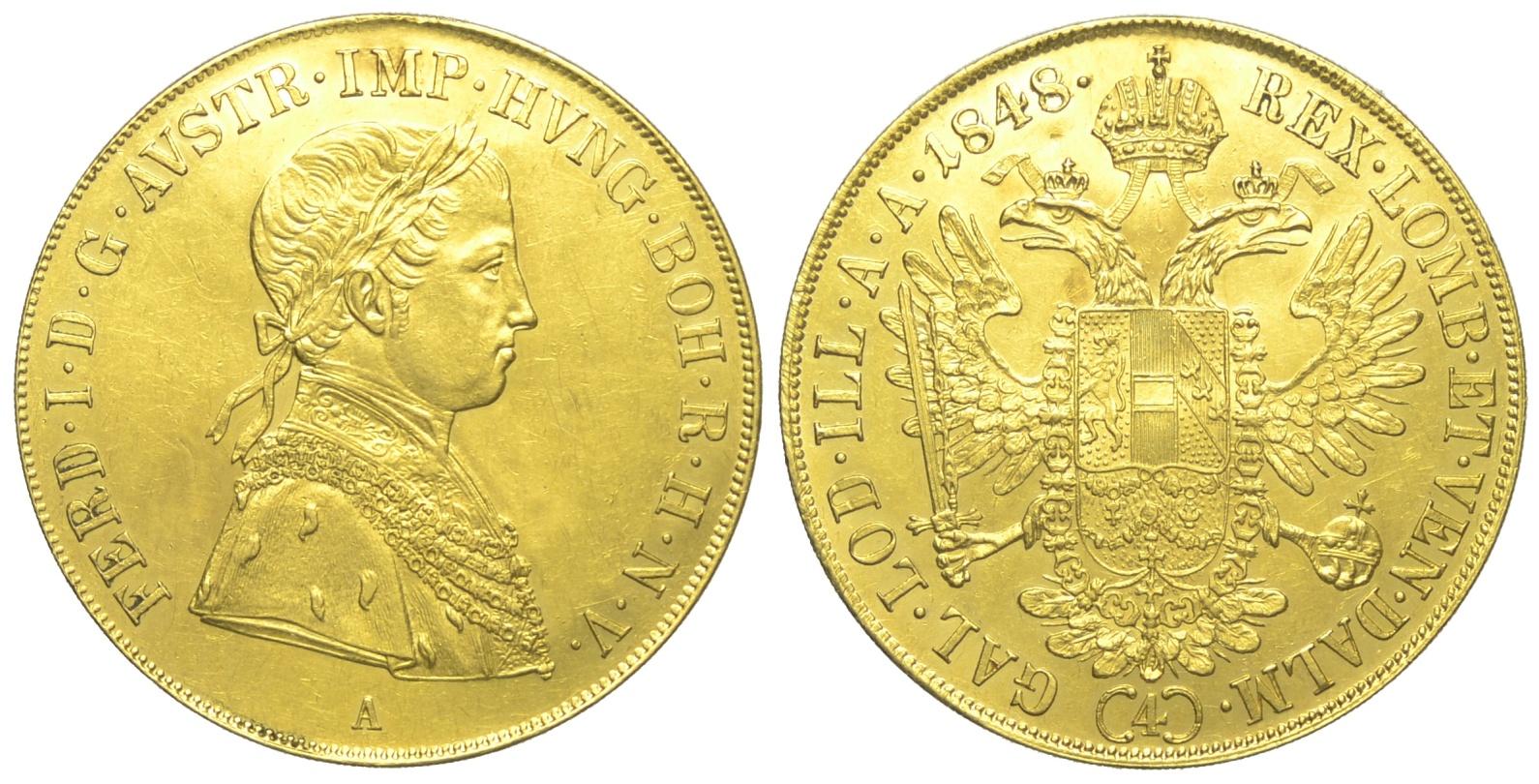 Austria 4 Ducati 1848 - Austria – Ferdinando I (1835-1848)4 Ducati 1848 A – RR AU mm 40 g. 13,94 - Lieve traccia di appicagnolo rimosso ...