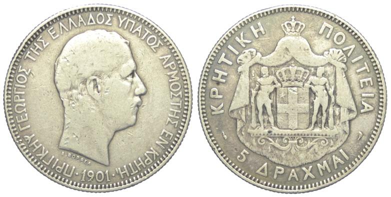 Creta 5 Dracme 1901 - Creta – Giorgio I (1863-1913)5 Dracme 1901 – Rara AG mm 37 MB+