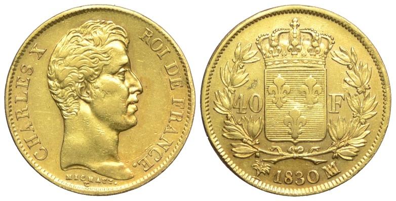 Francia 40 Franchi 1830 W - Francia – Carlo X (1824-1830)40 Franchi 1830 W – Non Comune AU mm 26 colpetto ripreso BB-SPL