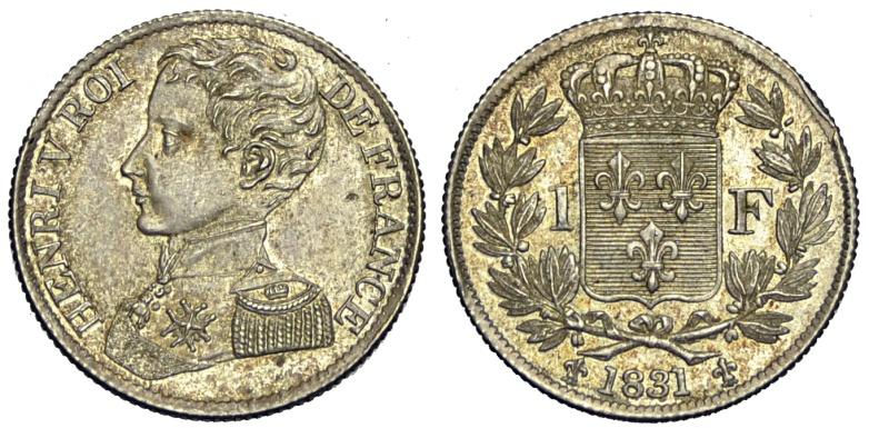 Francia Franco 1831 - Francia – Enrico V pretendenteFranco 1831 – Rara Gad. 451 AG mm 23,5 g. 5,01 bellissima patina SPL-FDC