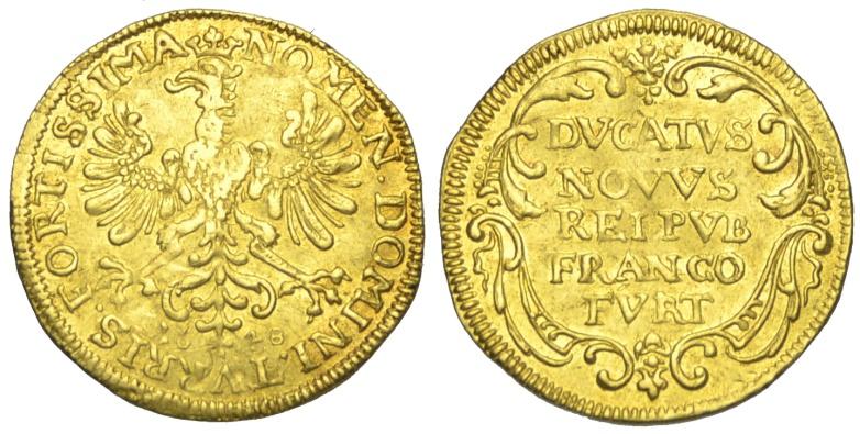 Germania / Francoforte Ducato 1648 - Germania / Francoforte Ducato 1648 – Fr. 976 AU mm 22 g. 3,45 Modesta ondulazione BB+