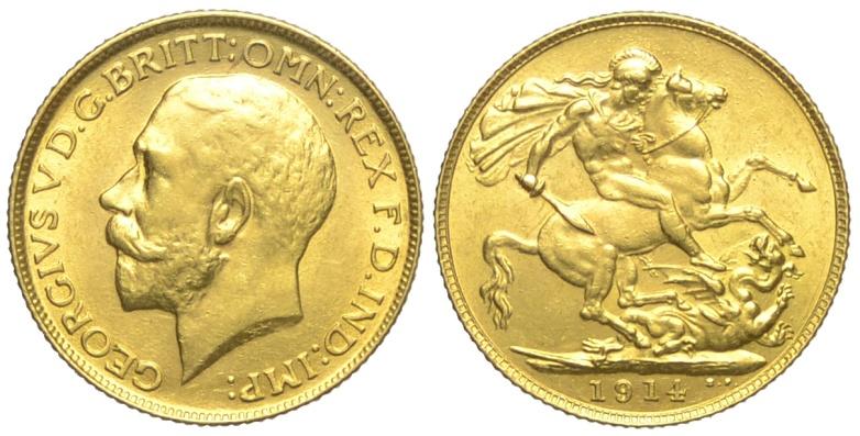 Gran Bretagna Sterlina 1914 - Gran Bretagna – Giorgio V (1910-1936)Sterlina 1914 – AU mm 22 SPL+