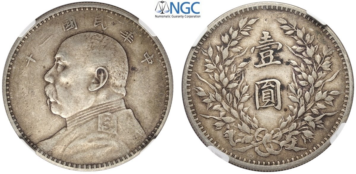 China, Republic, Dollar year 9 (1920), L&M-77 Ag mm 39 in Slab NGC XF45