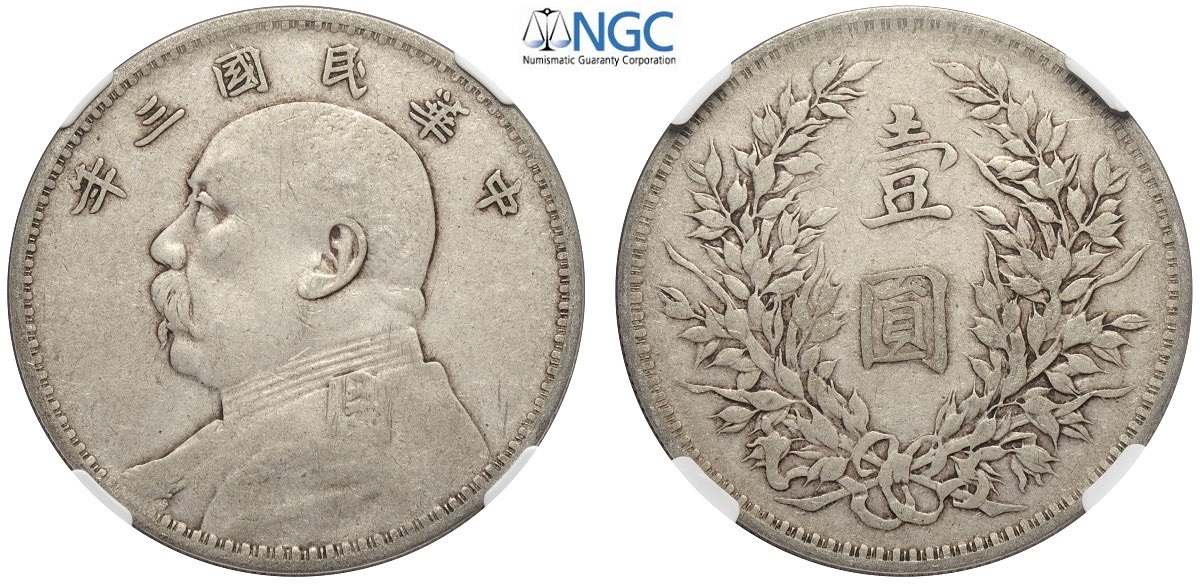China, Republic, Dollar year 3 (1914), L&M-63 Ag mm 39 in Slab NGC VF35