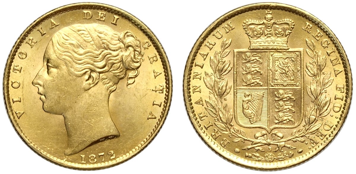 Great Britain, Victoria (1837-1901), Shield Sovereign 1872 die number 3, Au mm 22 eccezionale qualità, FDC