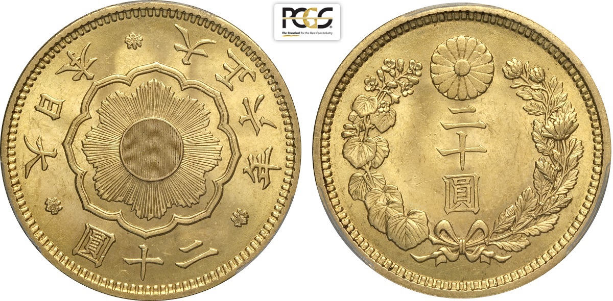 Japan, Yoshihito (1912-1926), 20 Yen year 6 (1917), JNDA-01/6 Au 28,5 mm 16,67 g , in Slab PCGS MS64