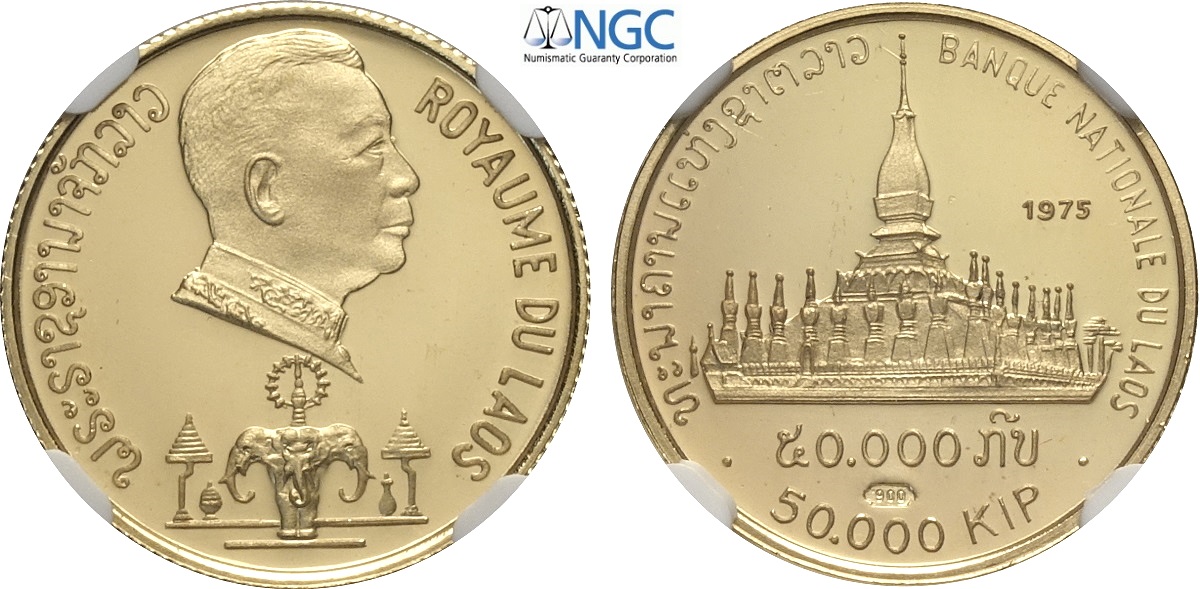 Lao (Laos), Savang Vatthana (1959-1975), 50000 Kip 1975, Mintage: 175, KM-20, Au 18 mm , in Slab NGC PF65 Ultra Cameo