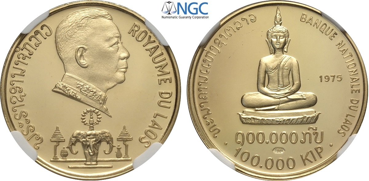 Lao (Laos), Savang Vatthana (1959-1975), 100000 Kip 1975, Mintage: 100, Au 23 mm , in Slab NGC PF68 Ultra Cameo