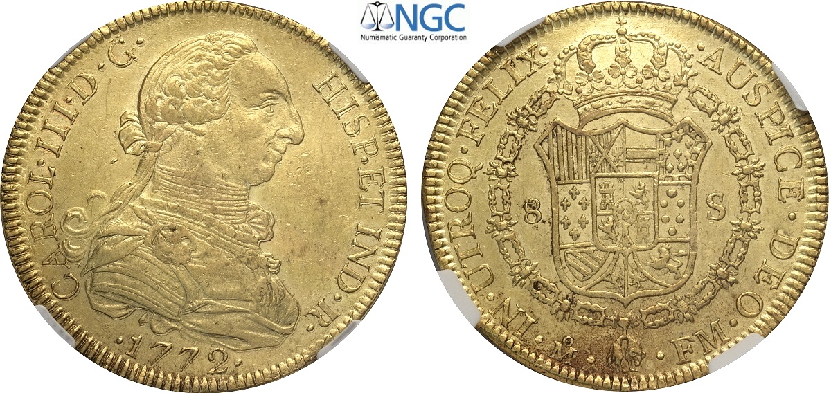 Mexico, Carlos IV (1788-1808), 8 Escudos 1772-FM, Au 37 mm , in Slab NGC AU58