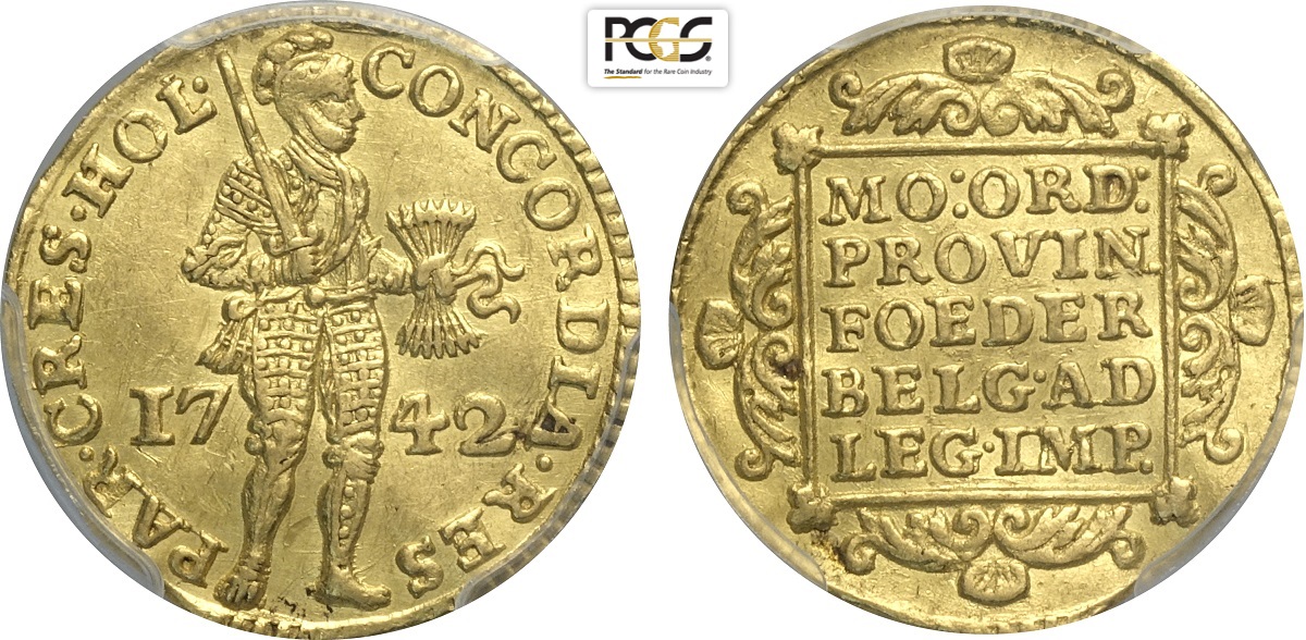 Netherlands, Holland, Ducat 1742, Au 22,5 mm , in Slab PCGS AU58