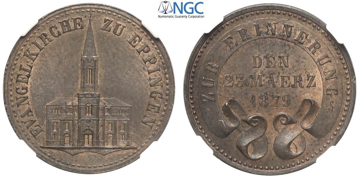 Germany Baden, Friedrich I, Kreuzer 1879, Cu mm 21 in Slab NGC MS64 BN