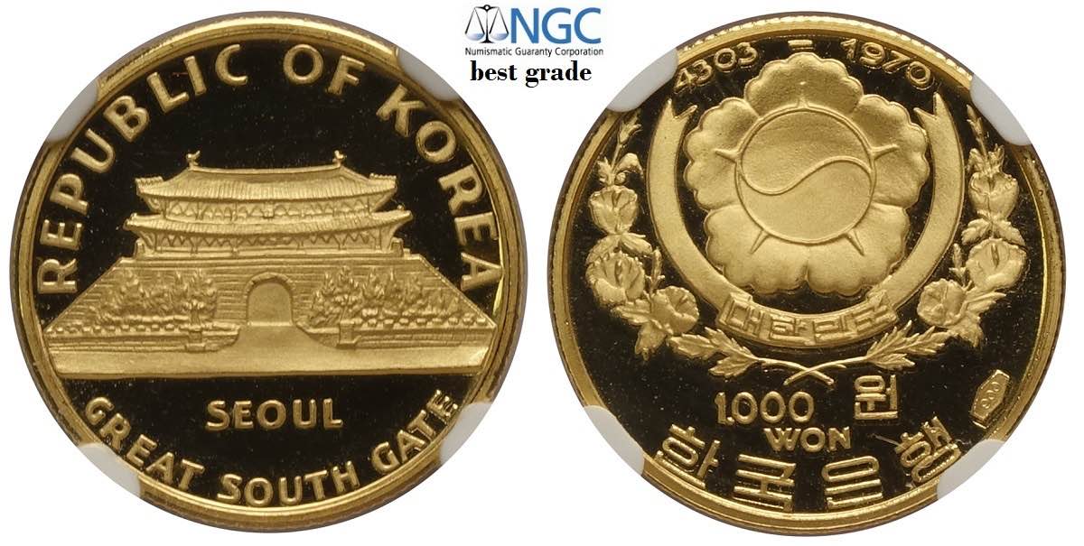 Korea-South, Republic, 1000 Won KE4303-1970, Au mm 16 in Slab NGC PF69 Ultra Cameo (Best grade of NGC)