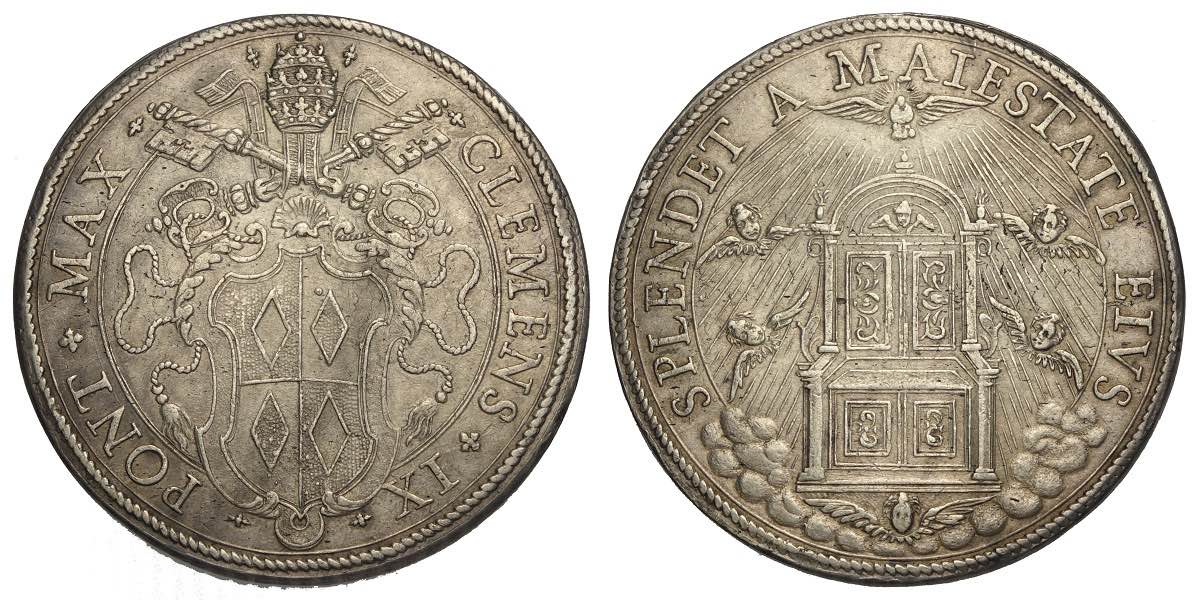 Roma, Clemente IX (1667-1669), Piastra, RR Ag mm 43,5 g 31,95 q.SPL