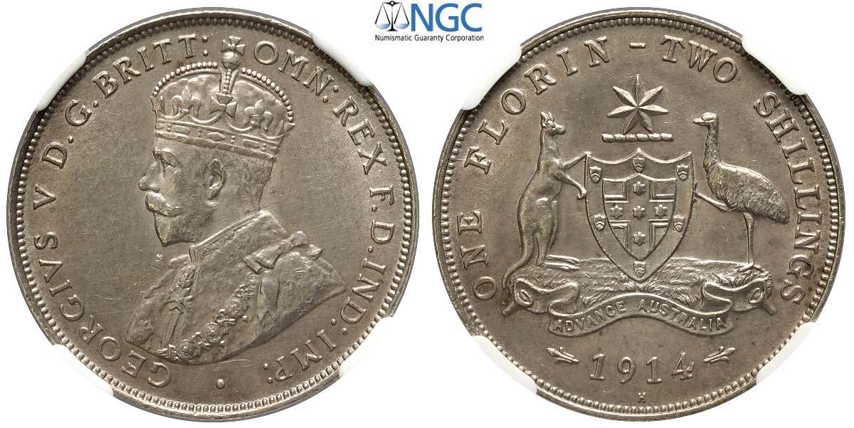 Lot 603 - Australia, George V, Florin 1914-H, Ag mm 28,5 in Slab NGC ...