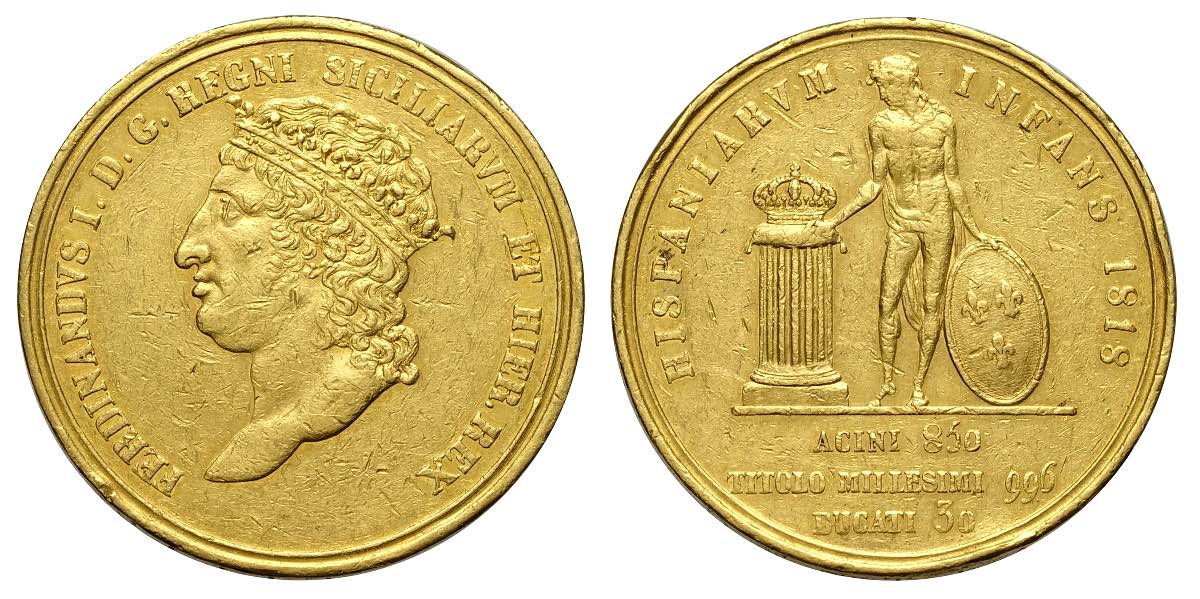 Lot 214 - Napoli, Ferdinando I di Borbone, Decupla da 30 Ducati 1818, ...