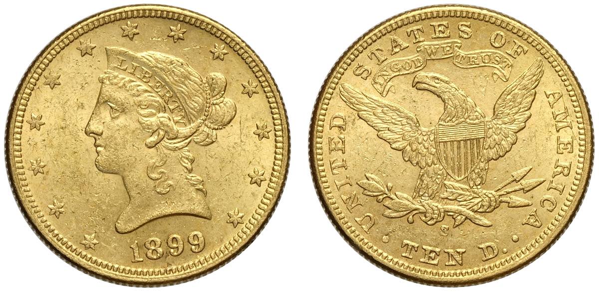 United States of America, 10 Dollars 1899-S, Au g 16,72 q.FDC
