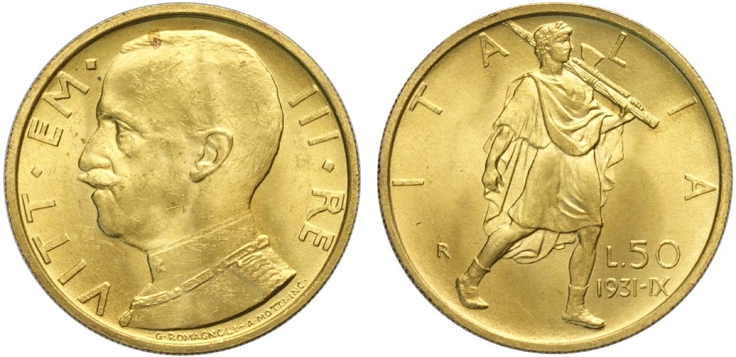 Regno d'Italia, Vittorio Emanuele III (1900-1943), 50 Lire 1931 anno IX, Au mm 20,5 q.FDC