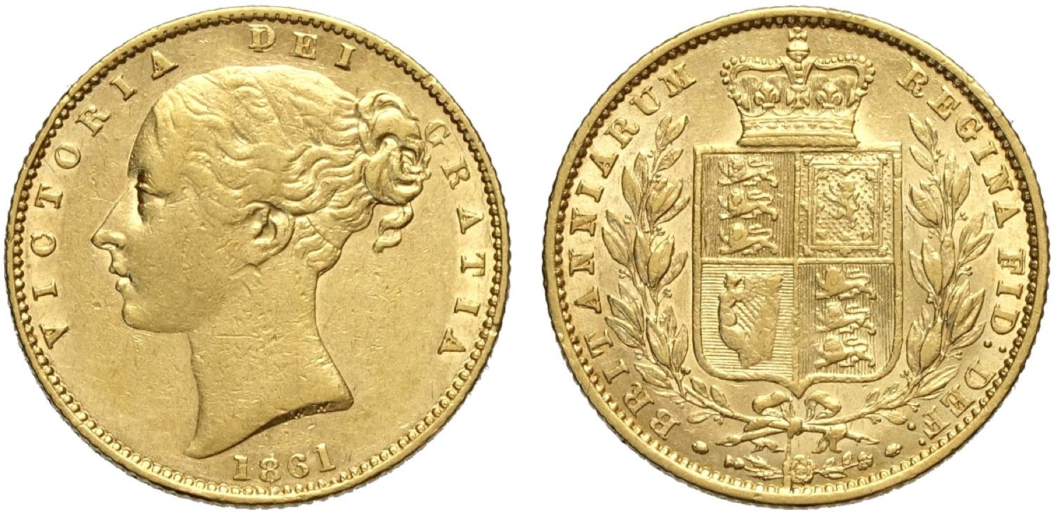 Great Britain, Victoria (1837-1901), Shiled Sovereign 1861, Au mm 22 BB