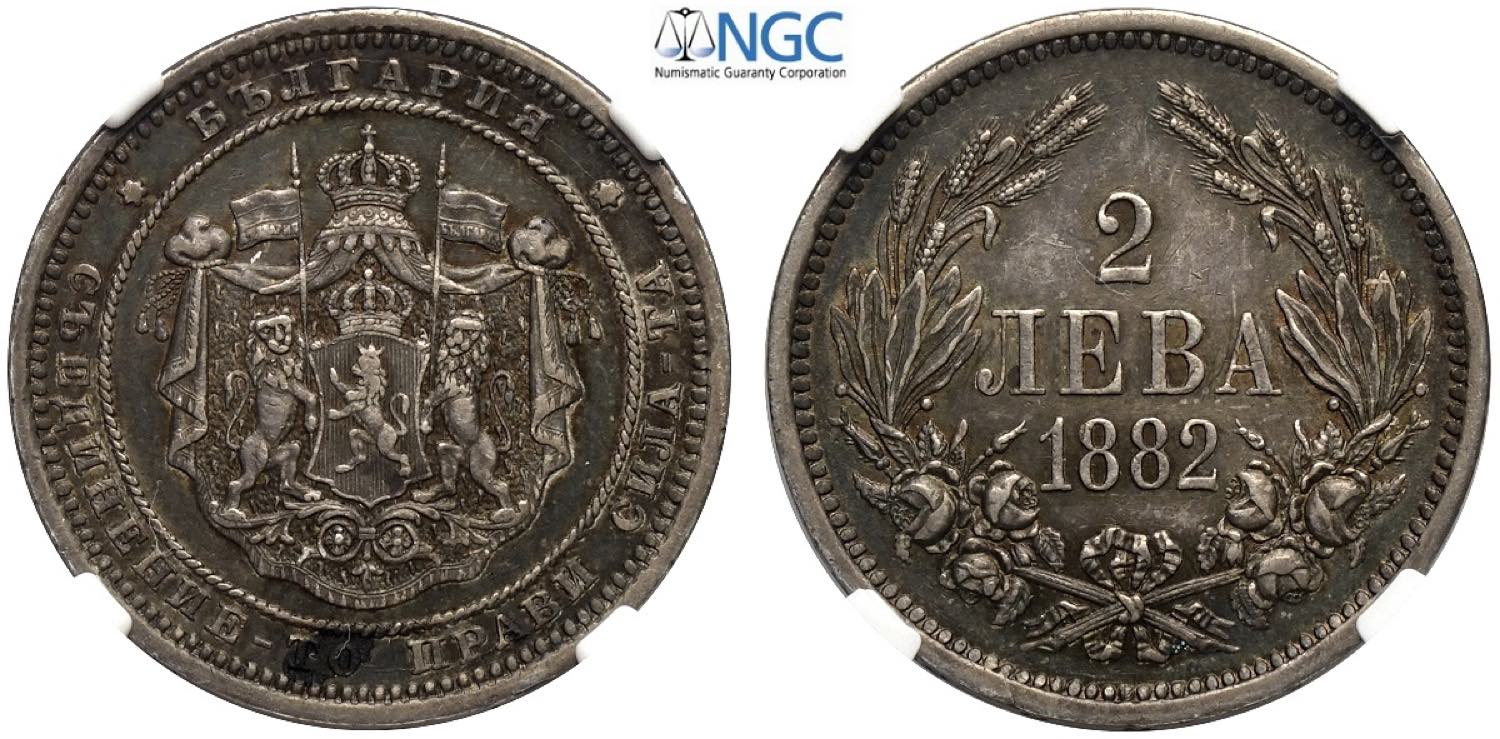 Bulgaria, Ferdinand I (1887-1918), 2 Leva 1882, Ag mm 27 in Slab NGC AU55 (cert. 6631784006)