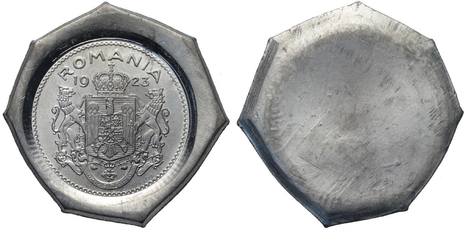 Romania, Ferdinand I (1914-1927), Lead Uniface Obverse Pattern Leu 1923 Huguenin, Sch&St-127-1.1, Pb mm 27 g 12,94 FDC