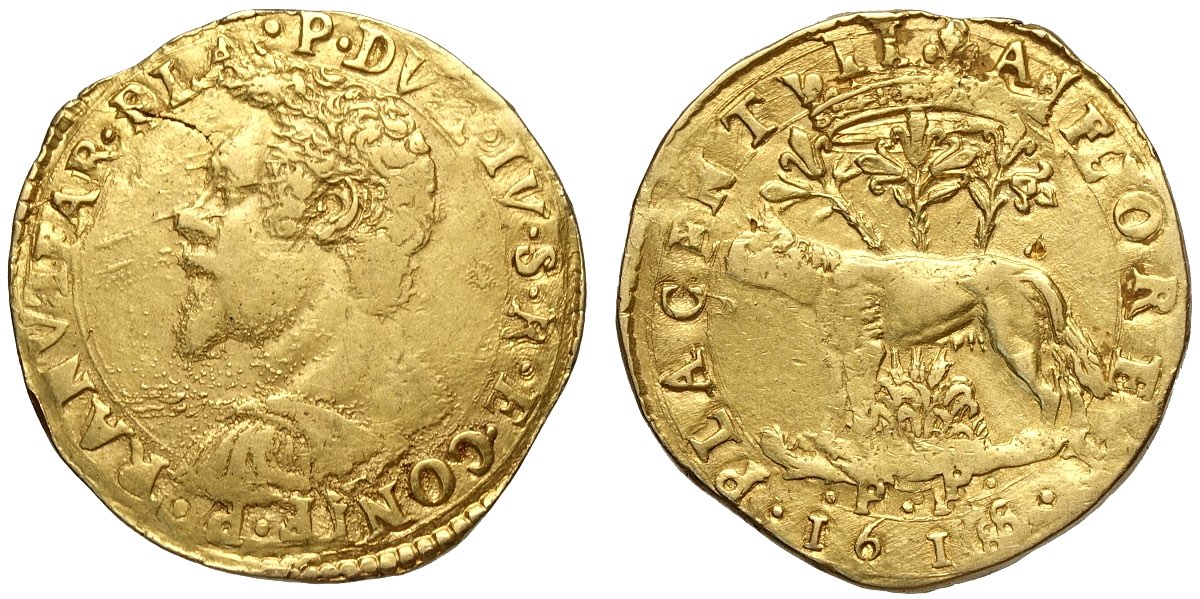 Piacenza, Ranuccio I Farnese (1592-1622), Quadrupla 1618-PP, MIR-1152/18 Rara Au mm 28 g 13,05 impercettibile abrasione sul contorno, BB