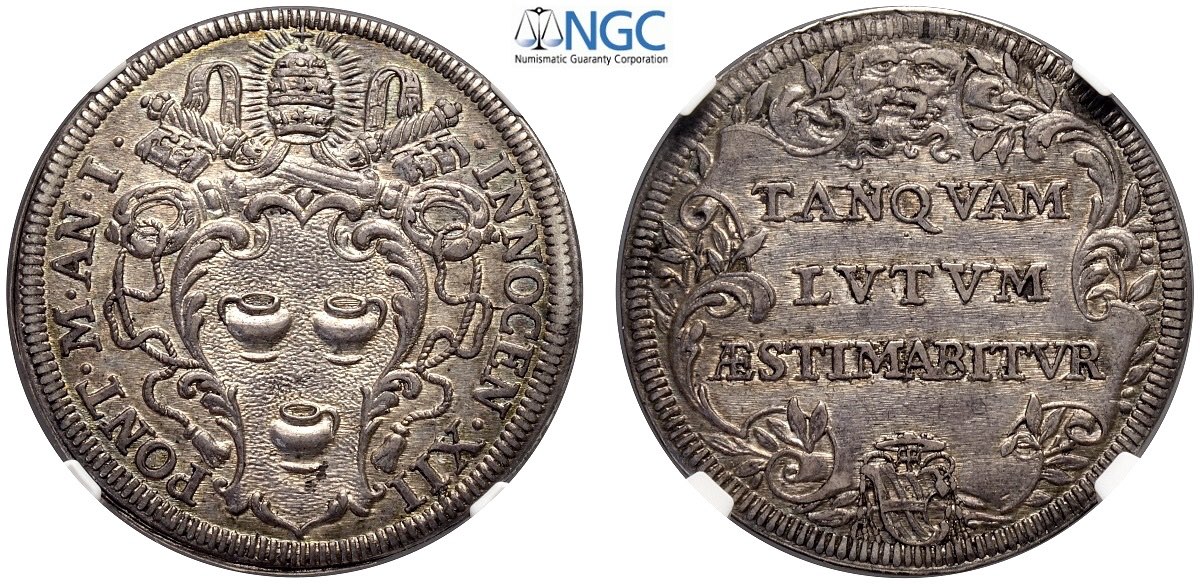 Roma, Innocenzo XII (1691-1700), Testone anno I, Munt-50 Ag mm 32 in Slab NGC MS62