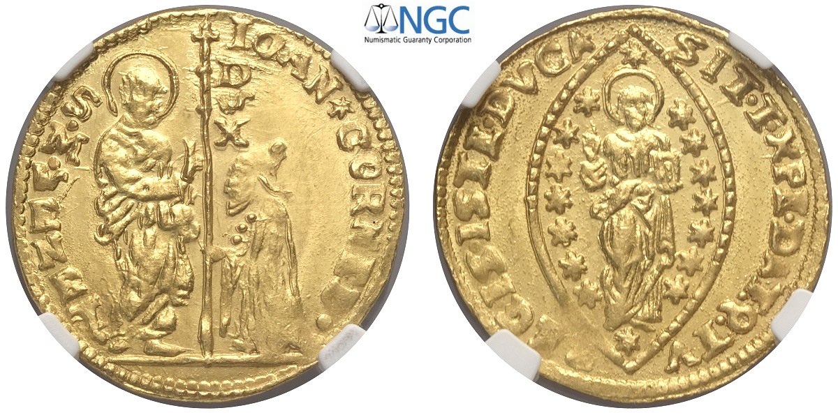 Venezia, Giovanni II Corner (1709-1722), Zecchino, Au mm 21 in Slab NGC UNC-obv cleaned (leggermente pulita al dritto)