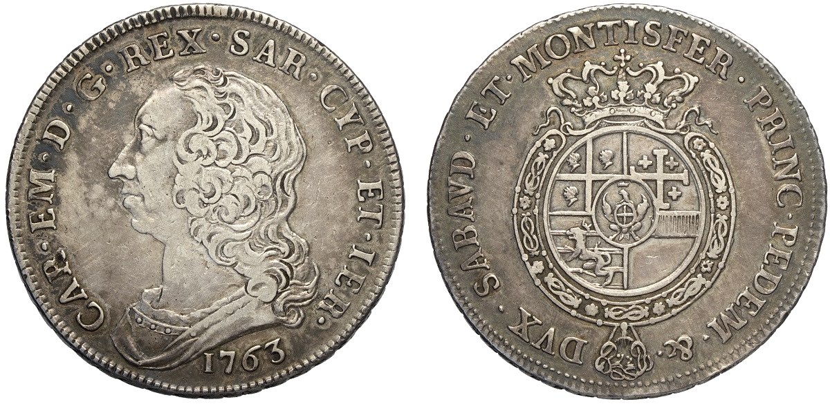 Lot 136 - Savoia, Carlo Emanuele III (1755-1773), Scudo 1763, Rara Ag ...