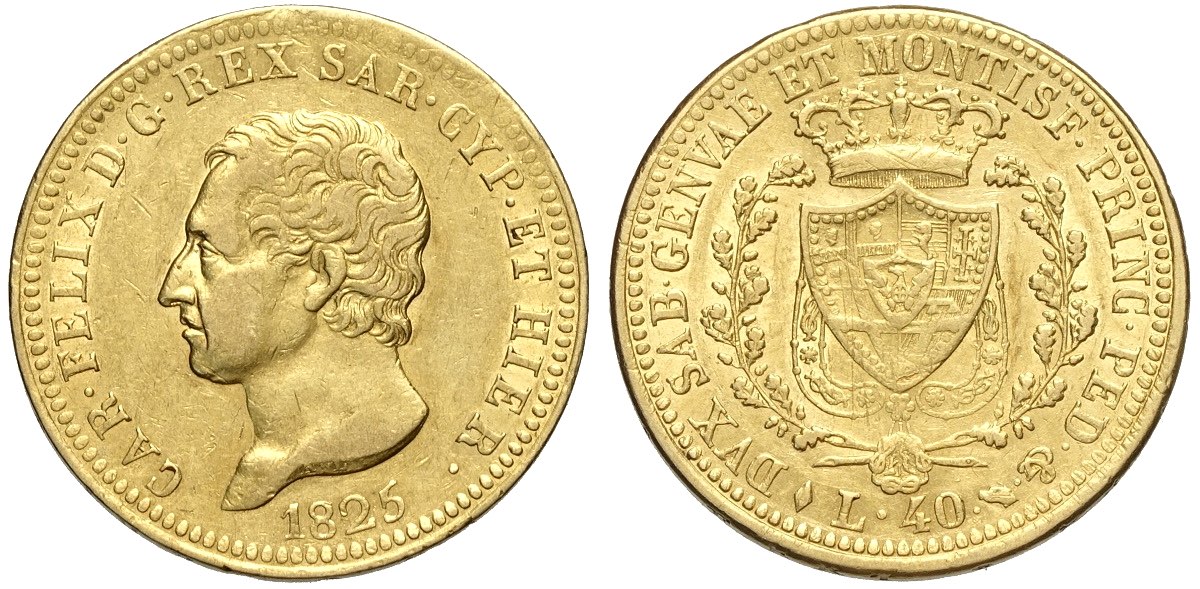 Lot 144 - Savoia, Carlo Felice (1821-1831), 40 Lire 1825 Torino senza ...
