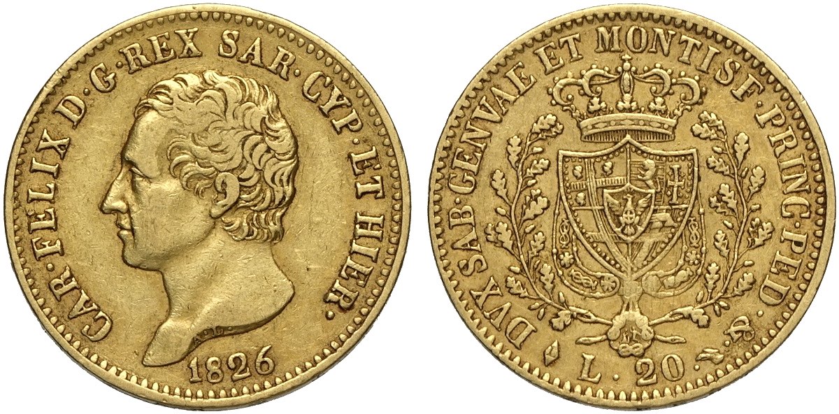 Lot 149 - Savoia, Carlo Felice (1821-1831), 20 Lire 1826 Torino, Au ...