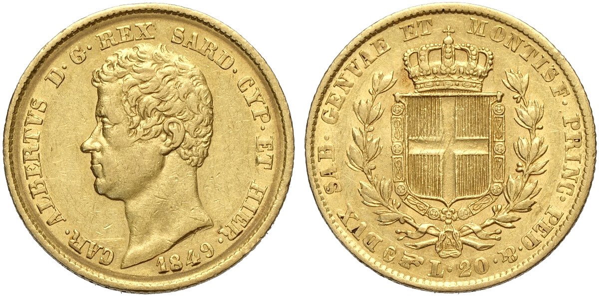 Lot 159 - Savoia, Carlo Alberto (1831-1849), 20 Lire 1849 Torino ...