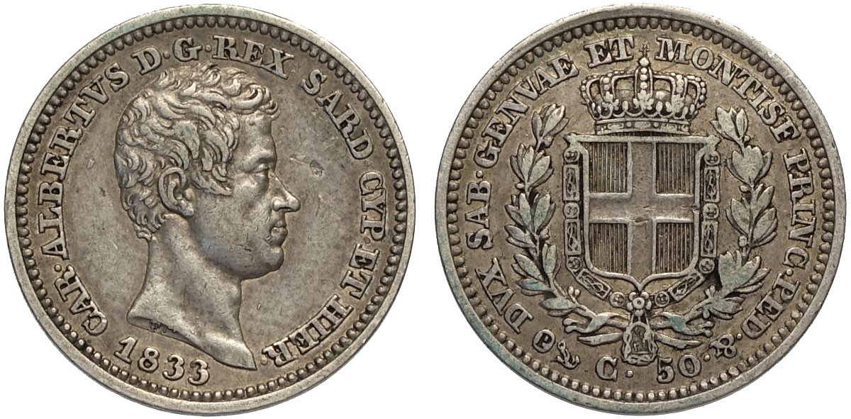 Lot 161 - Savoia, Carlo Alberto (1831-1849), 50 Centesimi 1833 ...