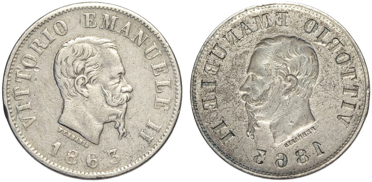 Regno d'Italia, Vittorio Emanuele II (1861-1878), 50 Centesimi 1863 Brockage, Ag mm 18 g 2,50 i brockage sulle monete in argento sono ... Read more