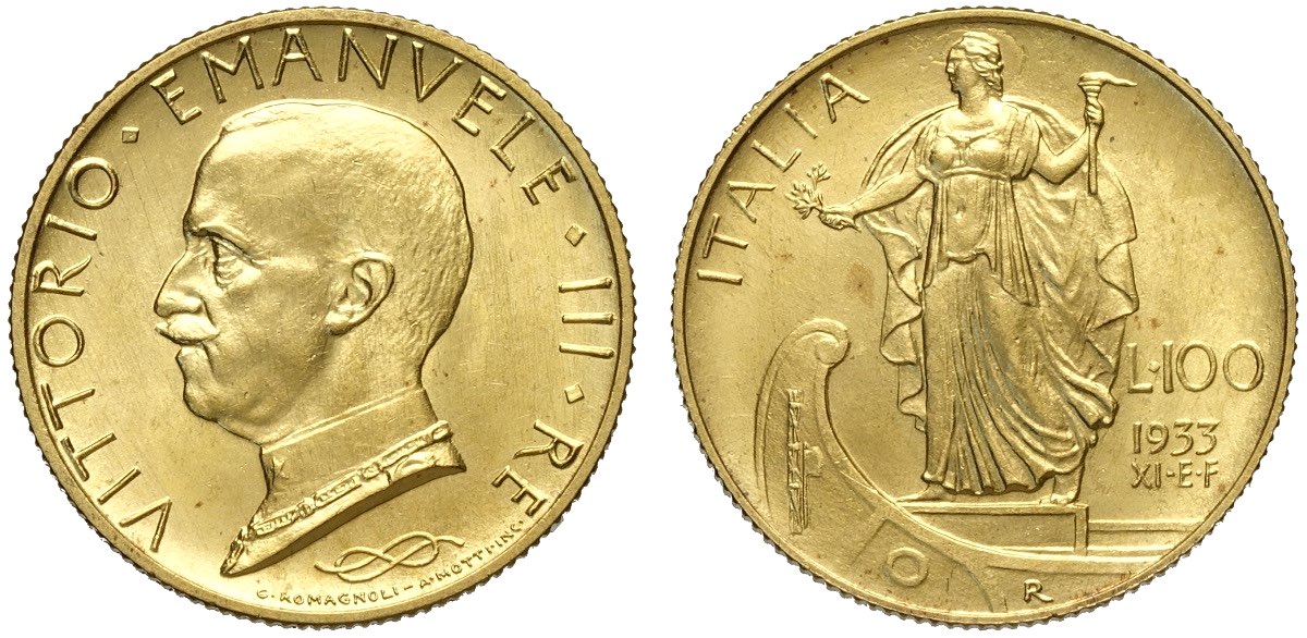 Regno d'Italia, Vittorio Emanuele III (1900-1943), 100 Lire 1933, Rara Au mm 23,5 SPL-FDC