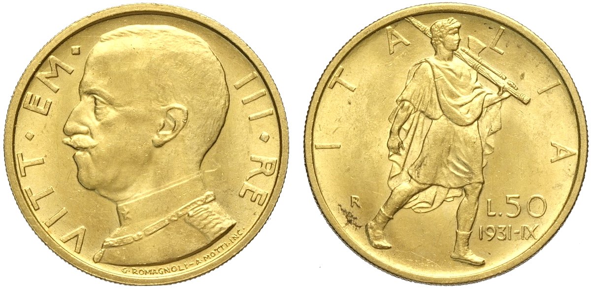 Regno d'Italia, Vittorio Emanuele III (1900-1943), 50 Lire 1931-IX, Au mm 20,5 SPL-FDC