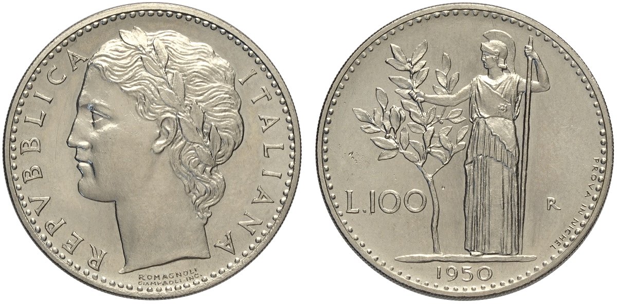 Repubblica Italiana, Monetazione in Lire (1946-2001), 100 Lire 1950 Prova in Nichelio, RR Pag-690 Ni mm 28 g 10,01 con bustina d'epoca ... Read more