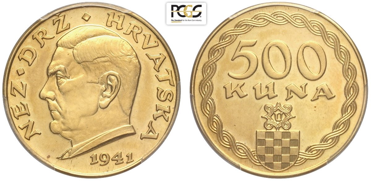 Croatia, Fascist State, 500 Kuna 1941, Rare, Mintage: 170 KM-A3 Au mm 23 in Slab PCGS AU58 (second best grade)
