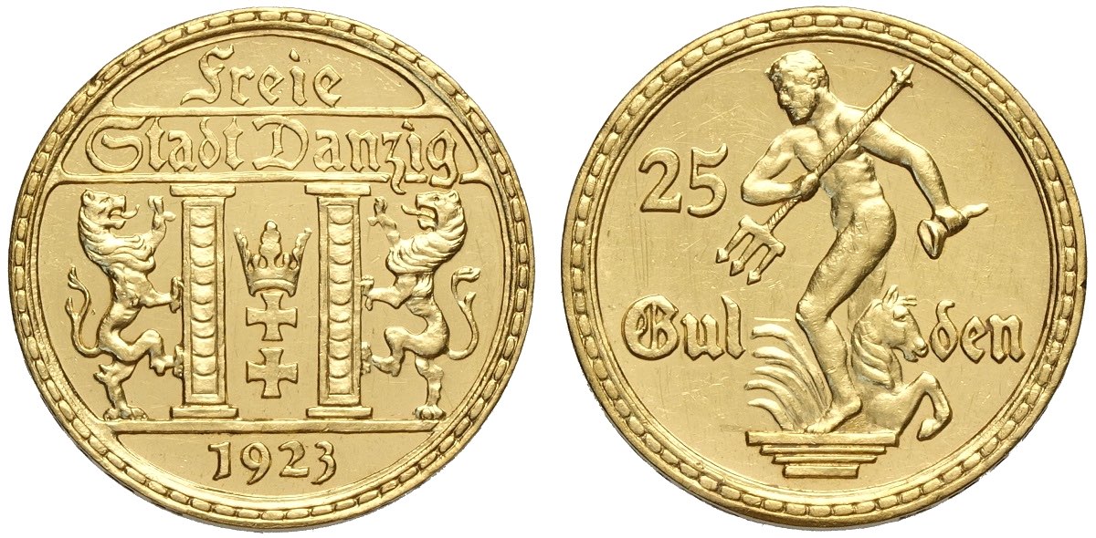 Lot 420 - Danzig, Free City, 25 Gulden 1923, RR Au mm 22 slight ...