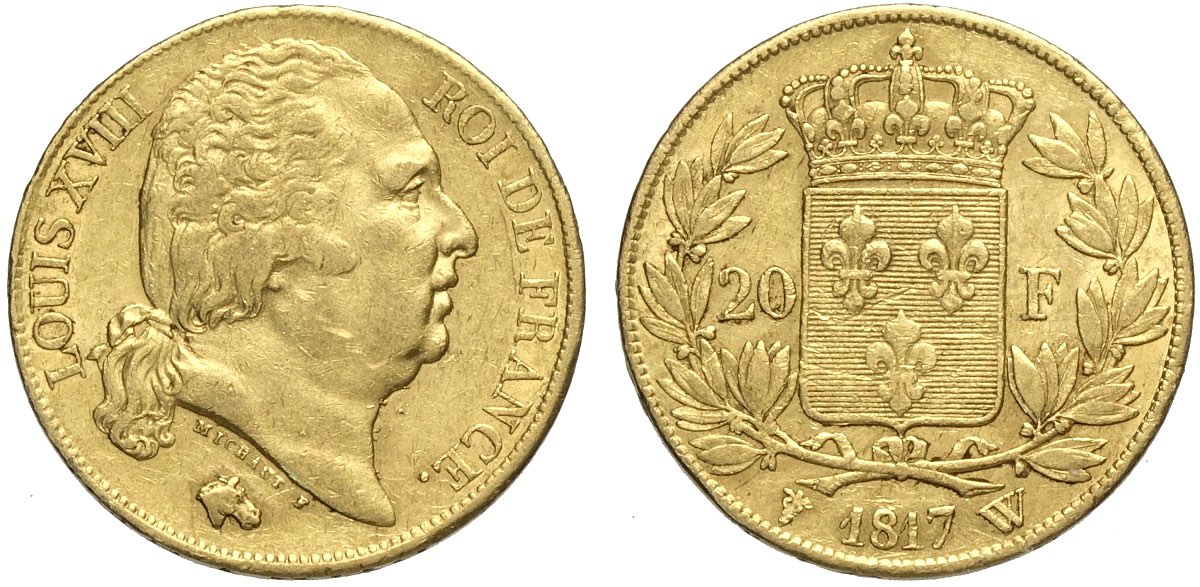 Lot 430 - France, Louis XVIII (1814-1824), 20 Francs 1817-W Lille, Au ...