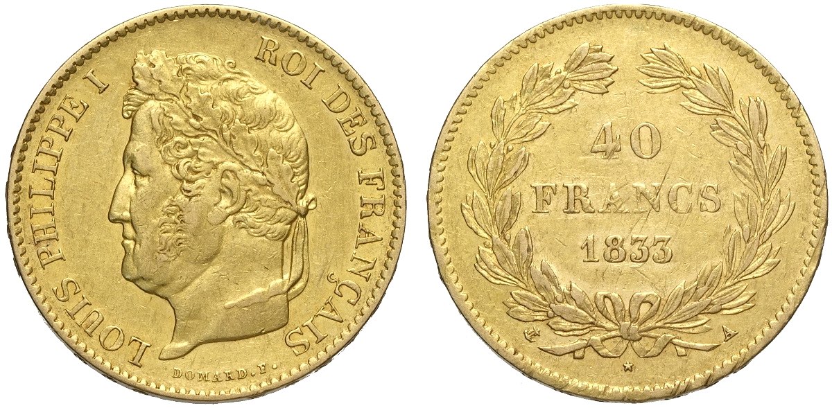 Lot 441 - France, Louis Philippe (1830-1848), 40 Francs 1833-A Paris, ...