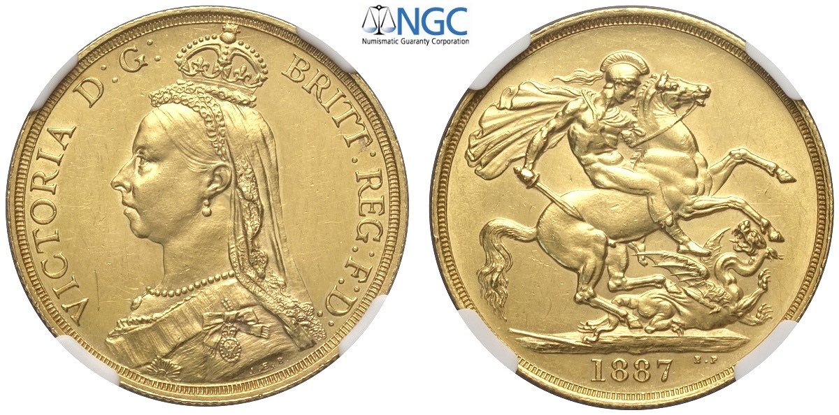 Great Britain, Victoria (1837-1901), 2 Pounds 1887, Au mm 28 in Slab NGC MS60