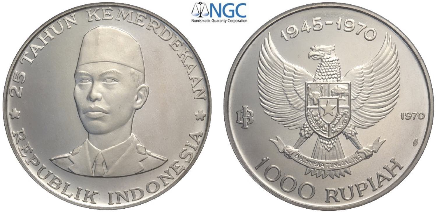 Indonesia, Republic, 1000 Rupiah 1970, Ag mm 55 in Slab NGC PF65 Ultra Cameo