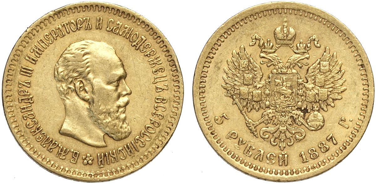 Lot 563 - Russia, Alexander III (1881-1894), 5 Roubles 1887, Au mm ...