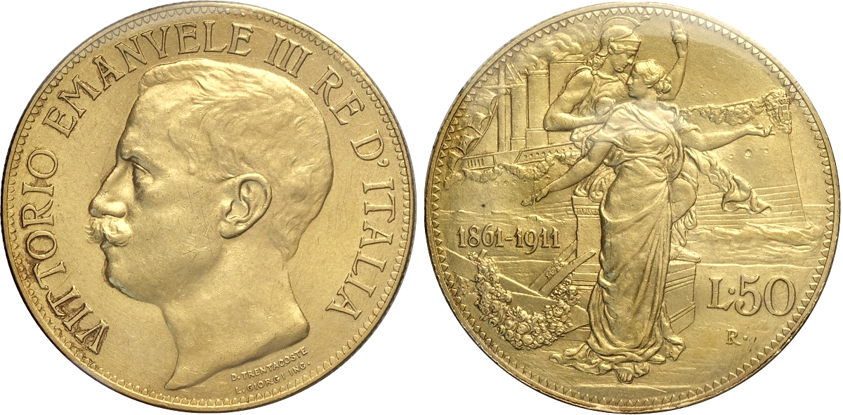 Regno d'Italia, Vittorio Emanuele III (1900-1943), 50 Lire 1911, Rara Au 28 mm , periziata q.FDC da E. Tevere